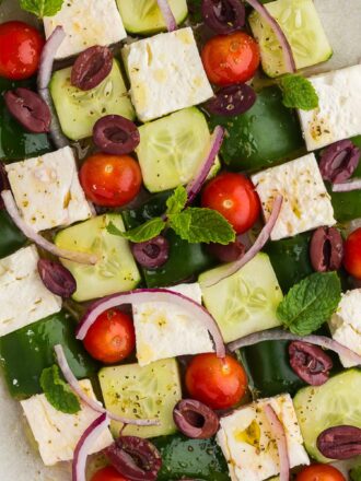 This unique Greek Salad is arranged in mosaic salad form for a gorgeous and colorful presentation (that just also happens to taste delicious!) It’s...