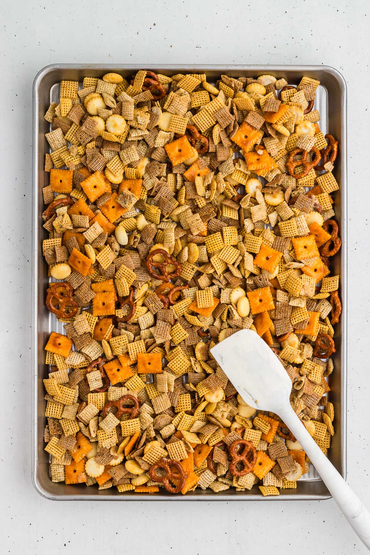- Cheese crackers – I’m partial to classic Cheez-Its for this Chex mix. White cheddar flavor are also delicious. Goldfish might be a fun swap, too!
